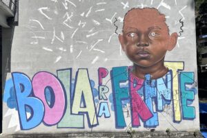 Seit 2013 gibt es den Austausch zwischen Schülerinnen und Schülern der Heinrich-Böll-Gesamtschule und der Fußballschule Bola par Frente. Die brasilianischen Jugendlichen, die am Austausch teilnehmen, kommen aus der Favela, in der die Fußballschule ist. Favelas sind Stadtbezirke an den Rändern Rios, in denen die Menschen unter sehr schlechten Lebensbedingungen leben, teilweise ohne Licht und ohne Strom in selbst gebauten Bretterhütten mit vielen Personen auf engem Raum. Die Fußballschule hat zusammen mit der Schule in der Favela das Ziel, für Kinder und Jugendliche aus der Favela Chancen zu schaffen, durch Bildung, durch verlässliche Hilfe. Diese ist nur möglich durch den unermüdlichen Einsatz von Menschen wie Vanessa oder Mineiro, die vor Ort in Kontakt mit den Menschen sind.
