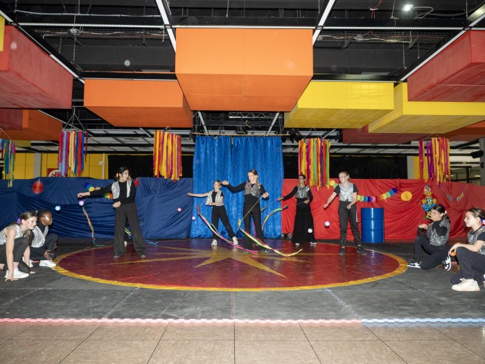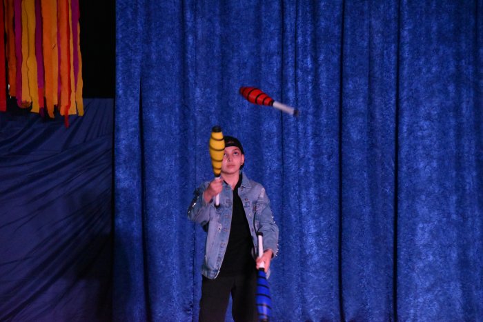 Auch in diesem Jahr hieß es für den 5.Jahrgang wieder: Vorhang auf, Manege frei! Rund 100 Artist:innnen zeigten am letzten Tag vor den Osterferien ihr Können. Das Publikum konnte sehen, was am Einrad, bei der Jonglage, auf dem AirTrack und vielem mehr einstudiert worden war. Natürlich durfte auch ein Clown nicht fehlen. Belohnt wurde das tolle und abwechselungsreiche Programm mit tosendem Applaus.