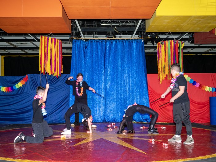 Die Vorbereitung für den Zirkus fand im Rahmen eines Tagesworkshops mit dem Kinder- und Jugendcircus Linoluckynelli statt und wurde anschließend im Sportunterricht verfeinert.