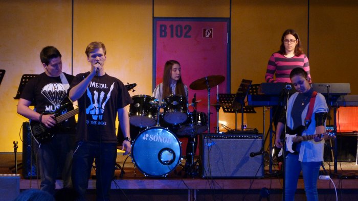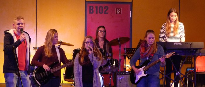 Die musikpraktischen Kurse des 12.Jahrgangs (geleitet von Herrn Becker und Herrn Wiedemann) zeigten ihr Können in verschiedenen kleinen Bands.