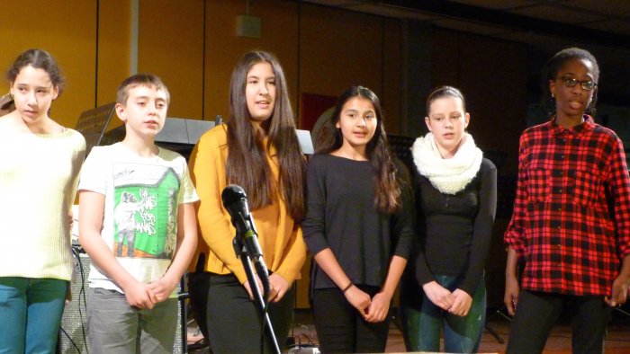Unter der Leitung von Herrn Hoffmann präsentierten die Sängerinnen und Sänger des Unterstufenchores verschiedene Lieder aus ihrem neuen Programm.