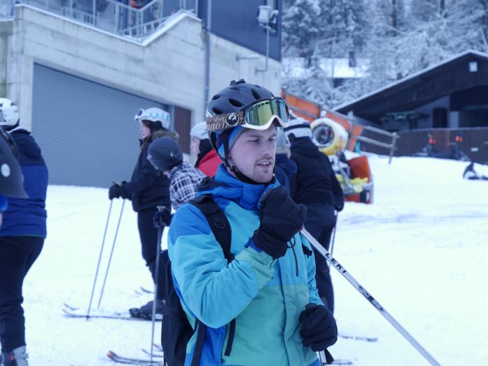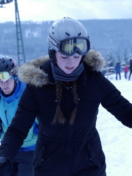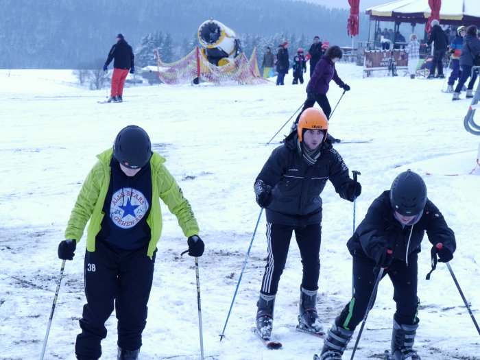 Eine Pause ließ Platz für Erholung und Verschnaufen, auch für einen kleinen Snack in einem der Einkehrpunkte. Pünktlich um 13:30 Uhr ging es dann wieder los und die nächsten zwei Stunden wurde weiter geübt und gefahren. Vielen der Anfänger oder unsichereren Erfahrenen war es gelungen, die Grundzüge des Skifahrens zu erlernen. Eine Kurve nach der anderen wurde nun immer besser bewältigt, wobei der Ankerlift noch viele Opfer forderte.