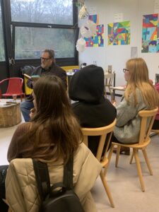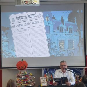 Im Rahmen des Wortspiel-Projektes des Buchclubs hatten wir am 27. November einen sehr spannenden Gast. Jugendbuchautor Christian Linker war bei uns zu Besuch, hat uns seine Arbeit vorgestellt und aus seinem Abenteuerroman „Boy from Mars“ vorgelesen. Bereits vor den Sommerferien haben unsere zwölf Wortspieler:innen unter Anleitung der Literaturpädagogin Susanne Carp zu dem Buch gearbeitet, Entwürfe zum Leben auf dem Mars erstellt, Modelle dazu gebastelt und Briefe an Protagonisten geschrieben. Vor allem aber haben sie sich mit den wesentlichen Gedanken aus „Boy from Mars“ auseinandergesetzt: Wie wäre es, in einer privilegierten Kolonie auf dem Mars zu leben, und einem Leben auf der verseuch